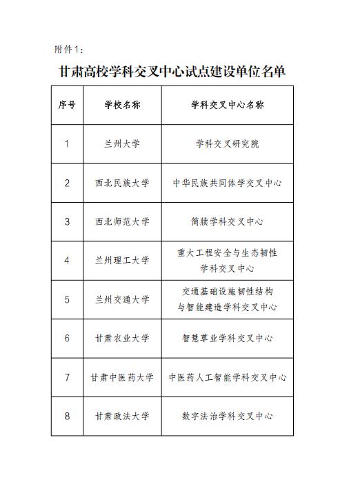 为深入贯彻党的二十大和二十届二中、三中全会和习近平总书记重要讲话重要指示和全国教育大会精神,全面落实《教育强国规划纲要(2024-2035年)》和教育部《高等教育学科专业设置调整优化行动方案(2025-2027)》的决策部署,统筹推进教育科技人才一体发展,聚焦“一带一路”“黄河流域生态保护和高质量发展”等国家重大战略布局和区域产业发展需求,探索交叉学科专业建设和人才培养新模式新形态,构建甘肃高校学科交叉融合发展新机制,培育先导性原创性重大成果,培养复合型交叉型创新人才,甘肃省教育厅试点建设一批在全国具有重要影响力的学科交叉中心。计划到2027年,建成15个左右甘肃高校学科交叉中心,力争获批1-2个教育部学科交叉中心。建成多个学科交叉团队,产出一批高水平交叉学科科研成果,培养一批复合型交叉型创新人才,形成可复制、可借鉴的经验和模式。
