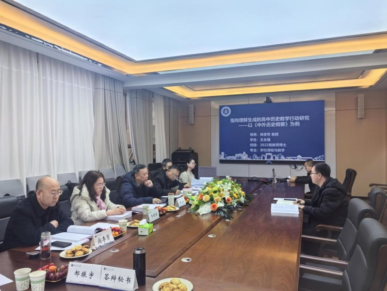 2022级博士研究生严黎明同学汇报的论文题目为《基于认知学徒制的初中史料教学设计研究》,该研究旨在解决当前初中历史教学中,学生史料解读能力薄弱、历史思维培养不足的问题。研究引入了“认知学徒制”理论,该理论强调专家(教师)通过示范、辅导、脚手架等策略,将内隐的思维过程外显化,以培养新手(学生)的高阶认知技能。王永强同学汇报的论文题目为《指向理解生成的高中历史教学行动研究——以<中外历史纲要>为例》,针对高中历史课堂中存在的“重知识灌输、轻意义建构”现象,以“促进学生的理解生成”为核心目标。研究依托《中外历史纲要》这一核心教材,采用“行动研究”范式。